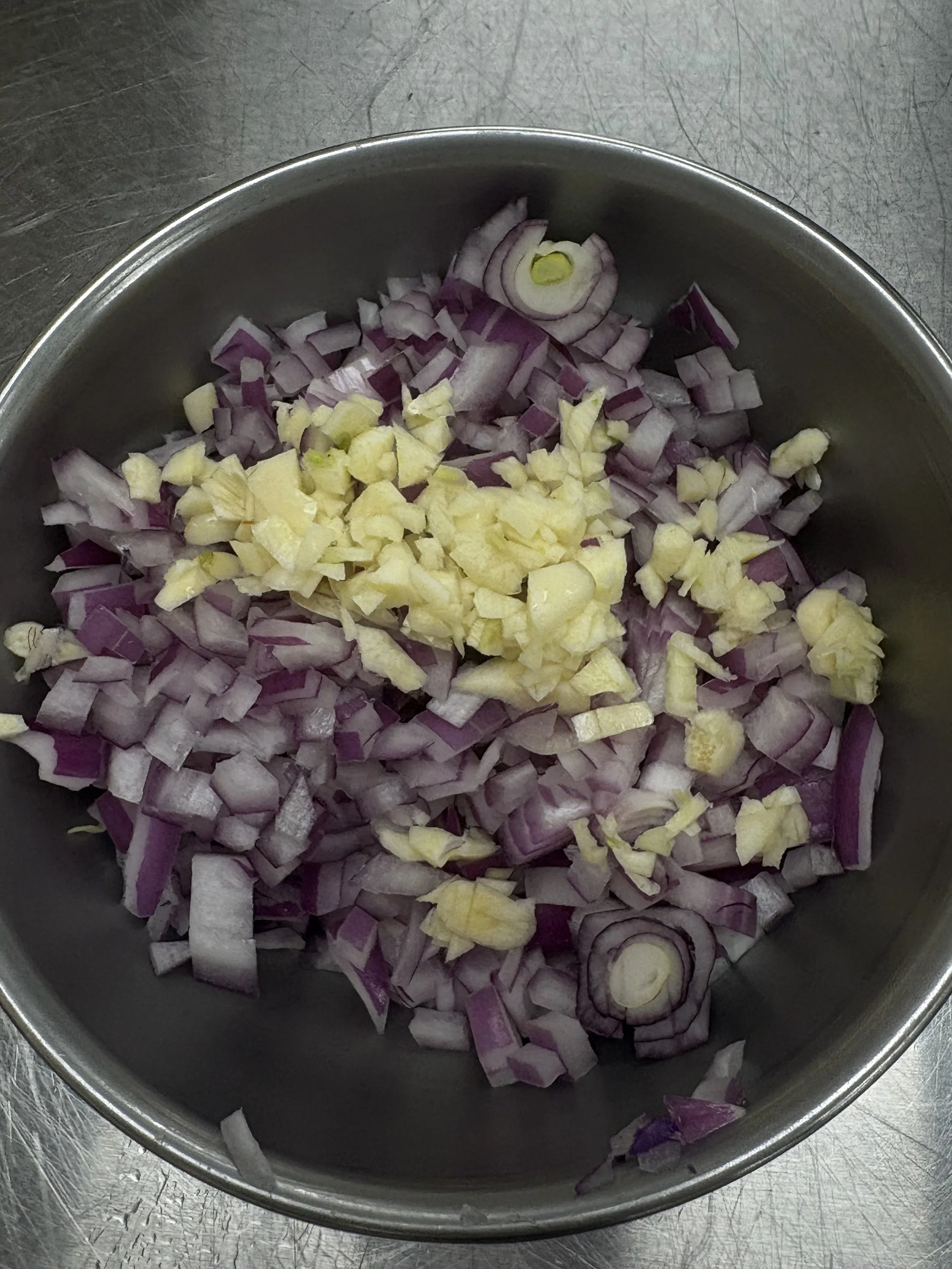 - Dice ¼ of the onion and 3 cloves of garlic for the lentils.
